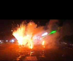 रावण दहन के बाद, पूरा आकाश जगमगाती आतिशबाजी से जगमगा उठा।